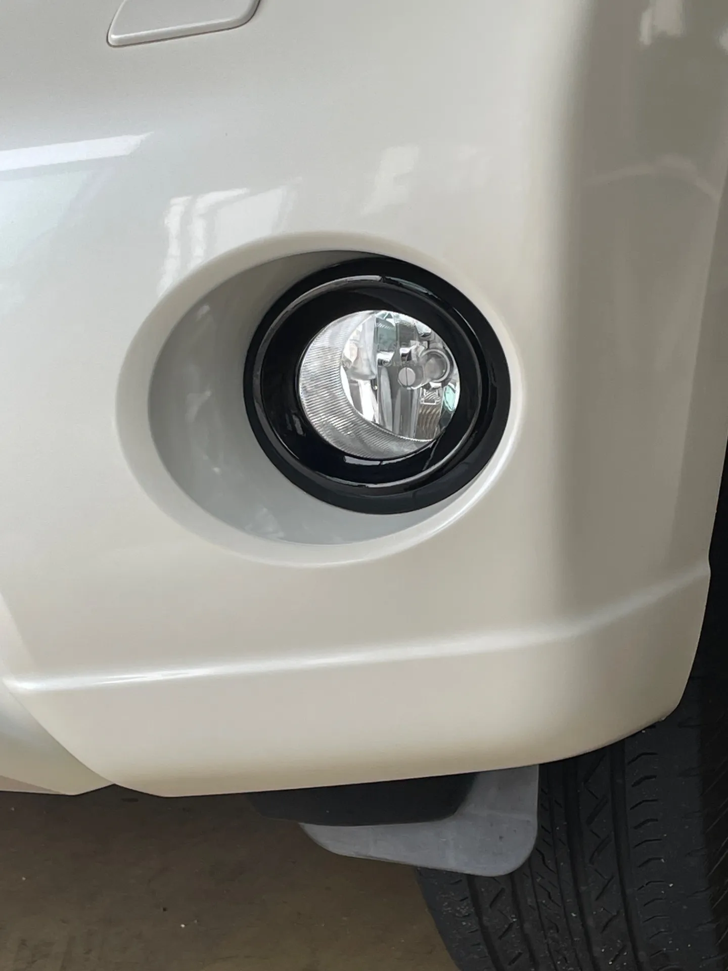 今回はフロントバンパーにあるフォグランプ回りの丸いメッキモールをグロスブラックでラッピングです。