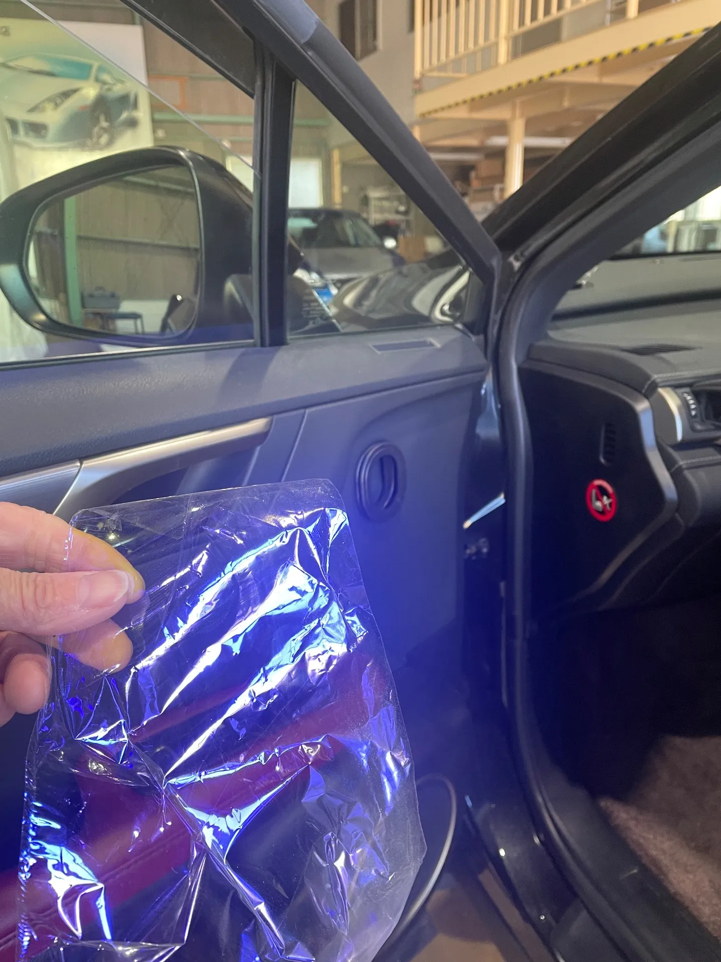 名古屋市昭和区からいらっしゃいましたF様。昨年夏にあまりに暑いのでフロントドアガラスにゴーストフィルムを貼ってもらったそうです。