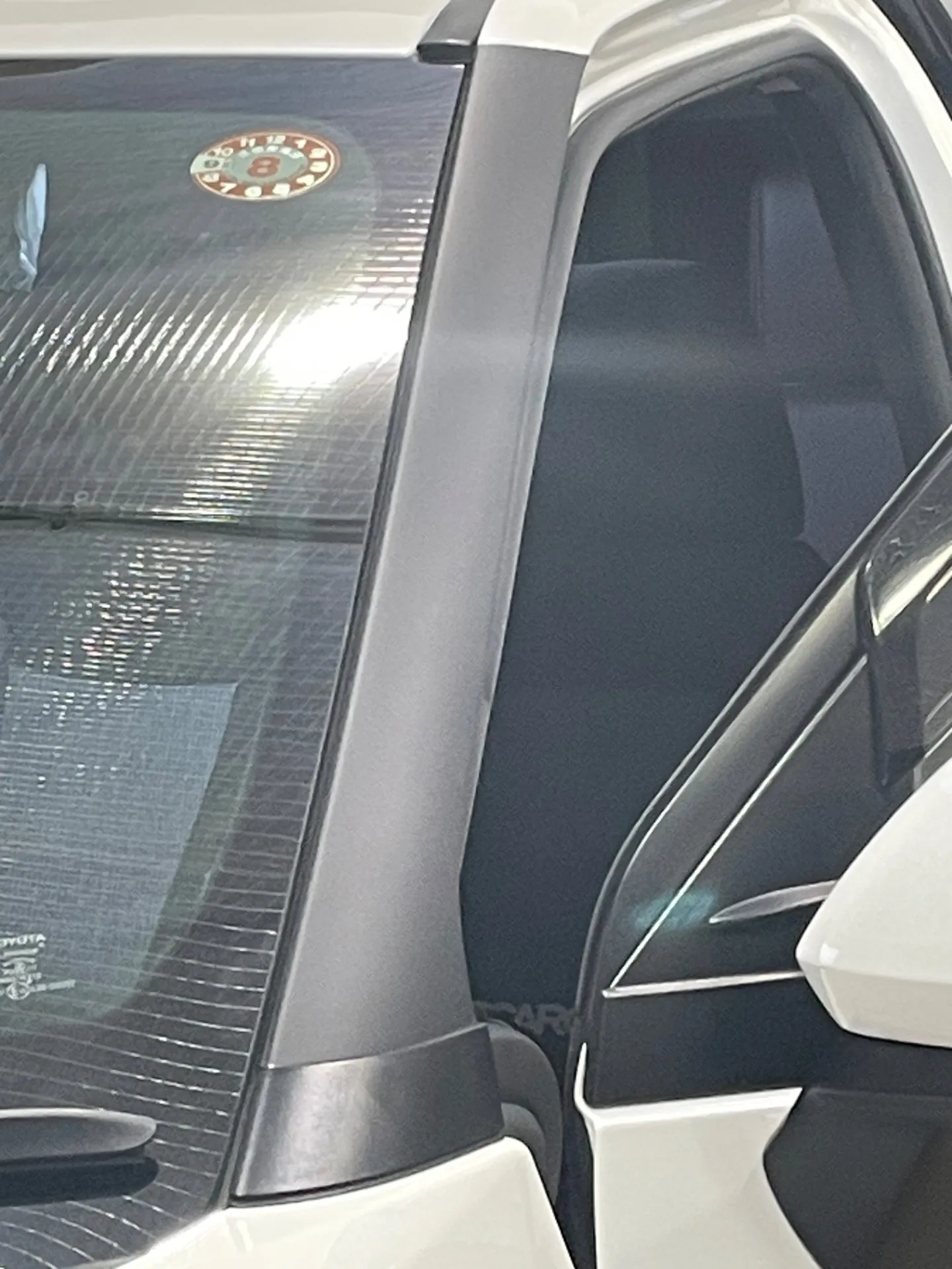 名古屋市守山区のT様です。まだ3年しか経っていないのにAピラーが色あせしてみっともない色に、しかもまだらになってしまった状態。あまりにもみっともないのでラッピングでキレイにしたいとのご要望です。